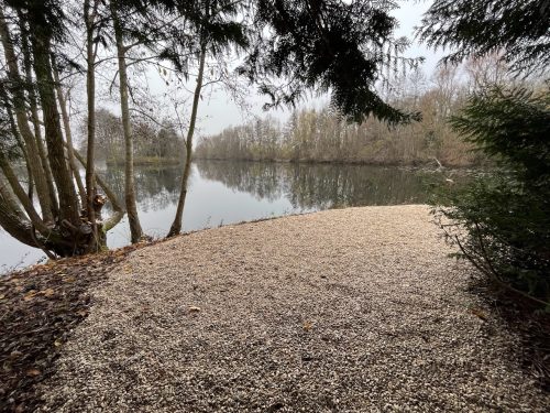 La zone de pêche est arborée sur l’ensemble de son périmètre dont un îlot surplombe le centre de l’étang favorisant la croissance de la vie aquatique.