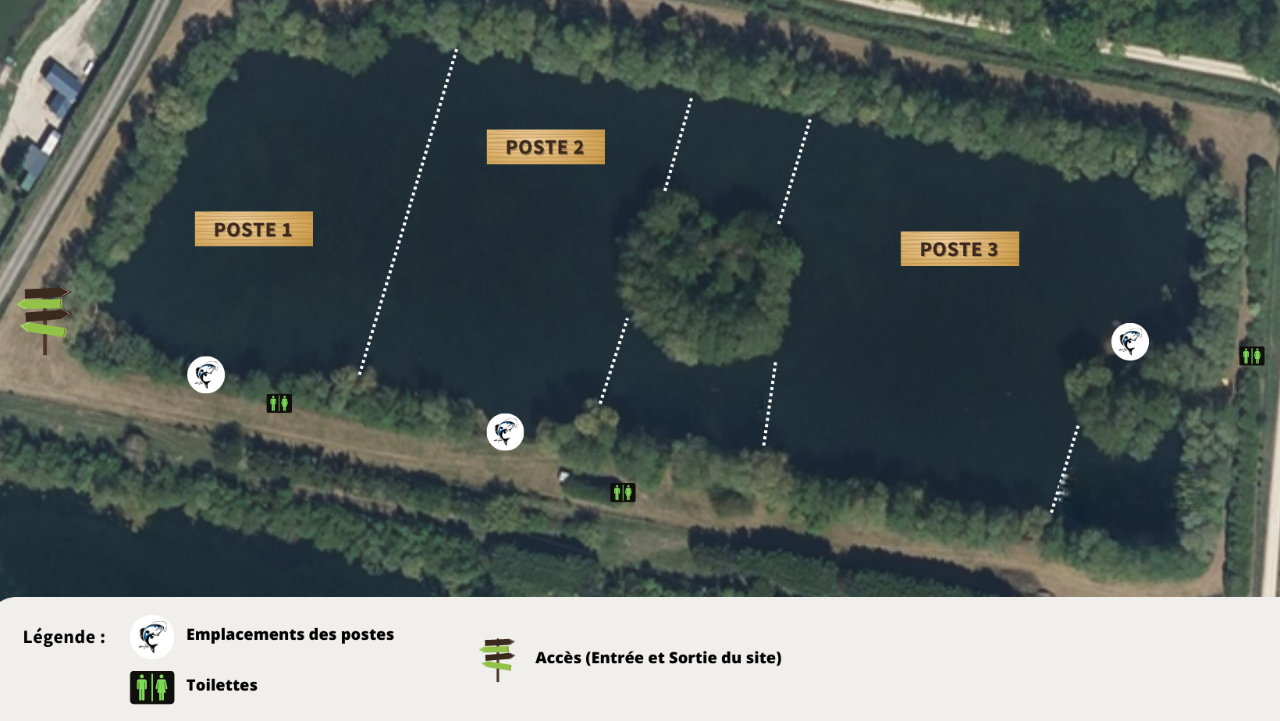 La première zone qui se situe au niveau de l’accès principal vous offre une possibilité de pêche de 1 à 2 pêcheurs :